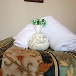 Çiftlik konaklama, deniz manzarasına sahiptir. Havlular, duş bonesi, banyo havluları da mevcuttur.